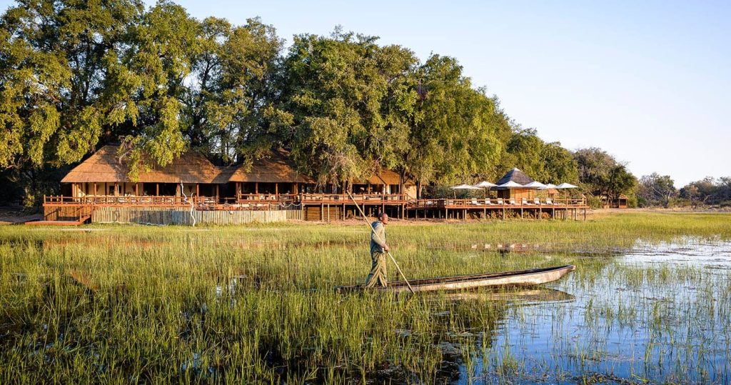 Mokoros, local dugout canoes, offer a different perspective of the bush in the company of a highly trained local guide. Each June, the whole area around the camp floods and turns the Okavango Delta into a labyrinth of lily-filled lagoons and streams where hippos fight for bathing rights and crocodiles wait for unwary antelope to linger too long over a drink. Poling through the byways created by the floodwaters is a magical experience that allows guests to get very close to the biggest of game and to see the world from a totally different angle. As a change from a game drive, the quiet, gentle pace of a mokoro is a real introduction to a way of transport still used in the Delta by the ‘river bushmen’ or BaYei people. (Seasonal Activity)